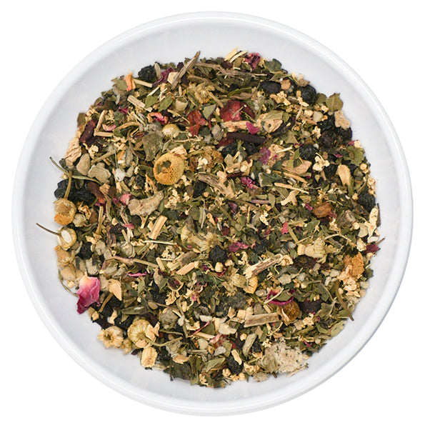 Ingredients: Nettle Leaf, Mullein, Elderberry, Peppermint, Licorice Root, Ginger Root, Hibiscus, Rose, Chamomile.