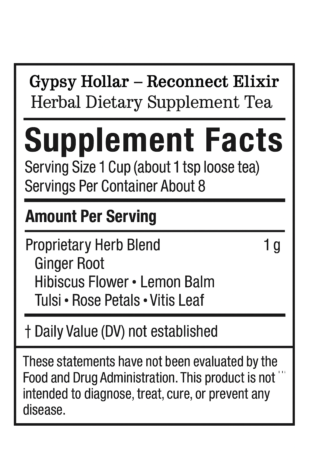 Reconnect Elixir is a vibrant blend rooted in the gifts of the earth. With ginger root, hibiscus flower, lemon balm, tulsi, rose petals, and a touch of stevia leaf, this tea is crafted to help you feel grounded, balanced, and fully present. The tart brightness of hibiscus meets the gentle calm of lemon balm and the warmth of ginger for a naturally uplifting cup.